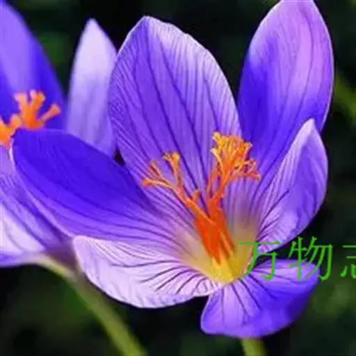 番红花(学名:Crocus sativus L.)又称藏红花、西红花,是一种鸢尾科番红花属的多年生花卉,也是一种常见的香料。多年生草本。球茎扁圆球形,直径约3厘米,外有黄褐色的膜质包被。叶基生,9-15枚,条形,灰绿色,边缘反卷;叶丛基部包有4-5片膜质的鞘状叶。花茎甚短,不伸出地面;花1-2朵,淡蓝色、红紫色或白色,有香味,花柱橙红色,柱头略扁,顶端楔形,有浅齿,子房狭纺锤形。蒴果椭圆形,长约3厘米。