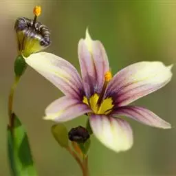 双色野鸢尾为多年生草本植物,叶子呈剑状淡绿色。…