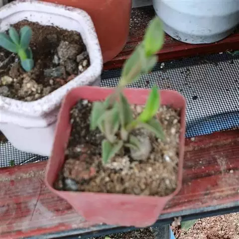 叶面覆有丝状绒毛,在阳光下有通透感,会开出粉色三角菱般的花朵。
