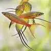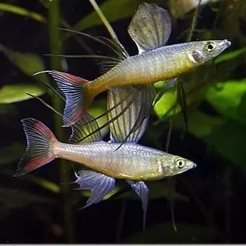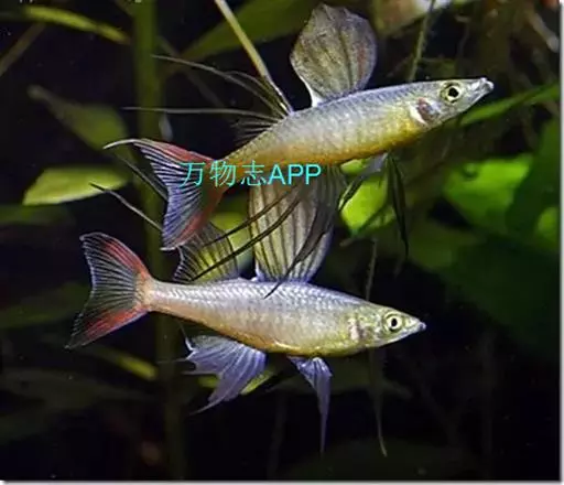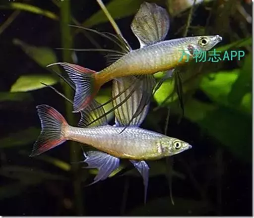 伊岛银汉鱼的腹鳍变异为两根长长的尖鳍,形似燕子,故名“燕子美人”。当然它们引人注目的地方除了纤长的腹鳍外,还有精心饲养后展现的美丽体色。