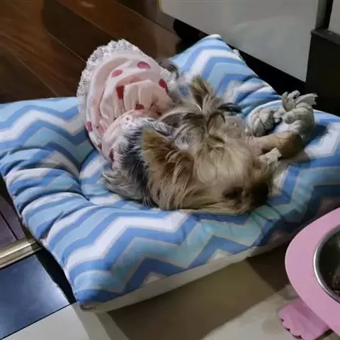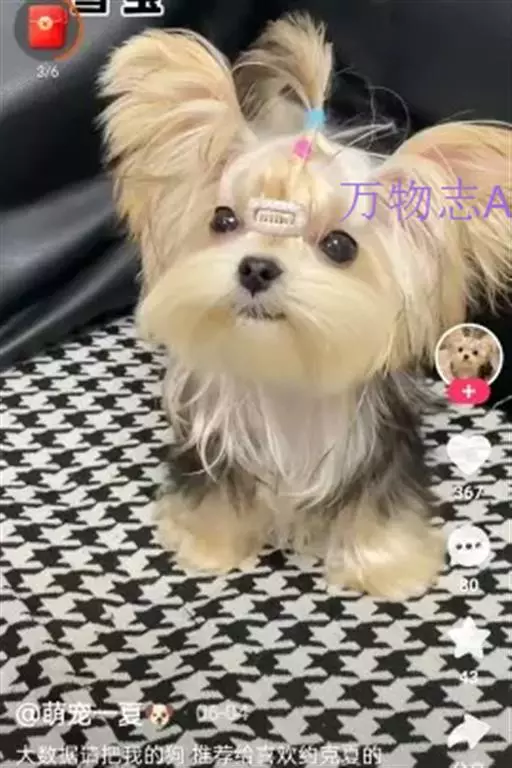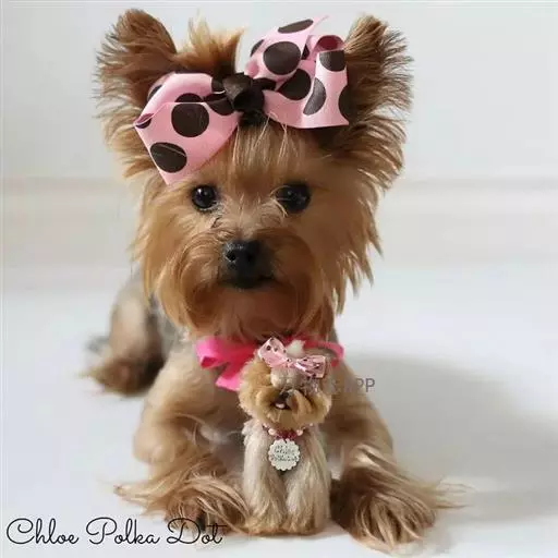 约克夏梗犬(YorkshireTerrier)因产于英国东北部约克郡而得名,故又称约克郡梗、约瑟犬、约瑟猩。约克夏梗身材娇小,体形仅次于吉娃娃小型犬,被毛柔滑如丝,如少女秀发,由头颈、躯干倾泻而下,光彩夺目。约克夏梗的头部经常用丝带装饰,并拥有梗类调皮的性格。拥有“上流贵妇人香闺”般的魅力。