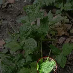 叶近无柄,在匍枝上的正常叶细小,倒卵形或长圆形,长3.5-5毫米,宽2-3毫米,全缘或具退化的钝齿,两面均被白色柔毛,茎枝上叶披针形或倒披针形,长0.8-2.5厘米,宽0.4-0.7厘米,先端钝,基部渐狭,边缘在上部具钝锯齿,近革质,上面绿色下面淡绿色,或两面常染紫红色,两面无毛,极少被稀疏的疏柔毛,下面满布凹陷腺点,侧脉约4对,与中脉在上面凹陷下面隆起。