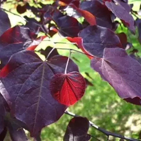 加拿大紫荆:分布在北美洲中部和东部地区。通常是灌木,但偶尔是乔木,树高可达12米;树叶呈宽卵形到心脏形,宽8-12厘米,下表面色暗,叶脉与叶腋之间被毛,树叶比南欧紫荆的树叶更薄,颜色更亮;花4-8朵簇生,呈浅玫瑰色到粉红色,花朵比南欧紫荆的花朵更小、颜色更淡。