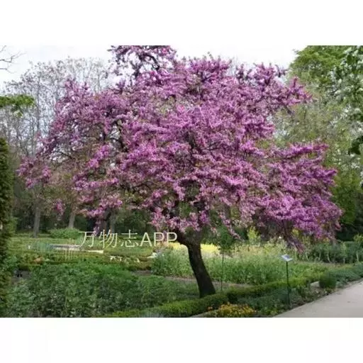 垂丝紫荆:分布在中国。灌木或小乔木,高12米;树叶宽卵形,长6-12厘米,上表面亮绿色,下表面被毛;花朵呈玫瑰色到粉红色,总状花序,长10厘米;荚果长9-12厘米。南欧紫荆的花、树皮、叶子和果实拿大紫荆的花和叶子 。