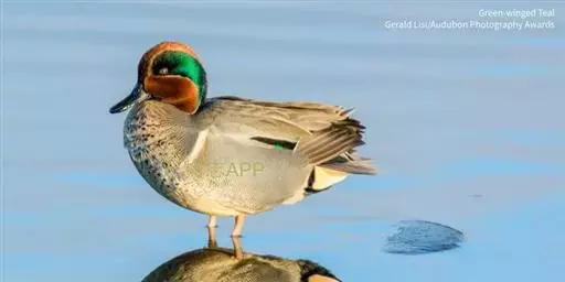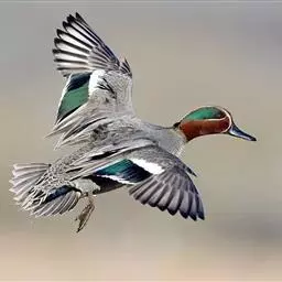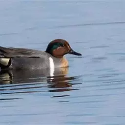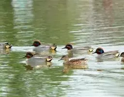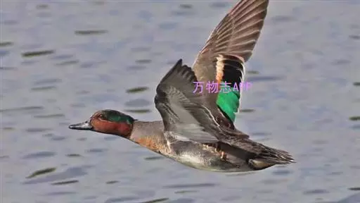 绿翅鸭(学名:Anas crecca)是小型鸭类,体长37厘米,体重约0.5千克。嘴脚均为黑色。雄鸟头至颈部深栗色,头顶两侧从眼开始有一条宽阔的绿色带斑一直延伸至颈侧,尾下覆羽黑色,两侧各有一黄色三角形斑,在水中游泳时,极为醒目。飞翔时,雌雄鸭翅上具有金属光泽的翠绿色翼镜和翼镜前后缘的白边,亦非常醒目。跗鳞盾片状;雄体气管有不对称的膨大部;两者鸣声不同,通常羽衣及行为亦异;配偶关系及家庭生活维持时间短;一年换羽2次;雄体常换“蚀羽”及鲜艳的婚羽各1次;幼雏的绒羽有明显花纹;雌体有“逗引”表演。广泛分布于美洲、欧洲、亚洲和非洲等地。