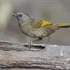 黄喉噪鹛体型略小,顶冠蓝灰色,特征为具黑色的眼罩和鲜黄色的喉。上体褐色,尾端黑色而具白色边缘,…
