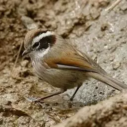 白眉雀鹛是鹟科、雀鹛属的鸟类。头顶暗灰褐色,有粗著白眉纹,眉纹上、下方又有宽阔黑纵纹;上体茶黄棕,…