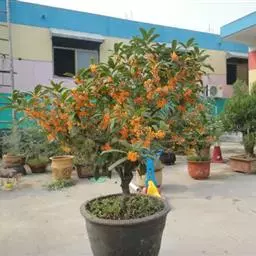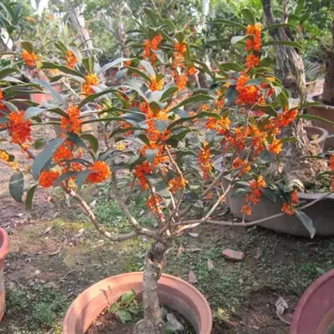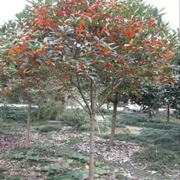 朱砂桂:为丹桂品种群,乔木,高5米,灌幅3米,树冠圆球形,紧密度中等,树皮浅灰色,比较平滑,皮孔稀…