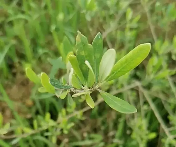 叶片革质,披针形,有时为长圆状椭圆形或卵形,长1.5-6厘米,宽0.5-1.5厘米,先端锐尖至渐尖,具小凸尖,基部渐窄或楔形,全缘,叶缘反卷,上面深绿色,稍被银灰色鳞片,下面浅绿色,密被银灰色鳞片,两面无毛,中脉在两面凸起或上面微凹入,侧脉不甚明显,5-11对,在上面微凸起;叶柄长2-5毫米,密被银灰色鳞片,两侧下延于茎上成狭棱,上面具浅沟。