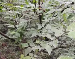 枝灰色或灰褐色,近圆柱形,散生圆形皮孔,小枝具棱角,密被银灰色鳞片,节处稍压扁。