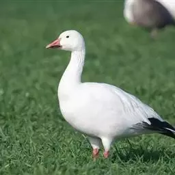 野外鉴别特征:大型水禽,体重4~7千克,体长110~135厘米。全身洁白,嘴端黑色,嘴基黄色,外形和大天鹅非常相似,但体型明显较大天鹅小,颈和嘴亦较大天鹅短,嘴上黑斑大,黄斑小,黄斑仅限于嘴基两侧,沿嘴缘不前伸于鼻孔之下;鸣声清脆,有似“Kou-kou”的哨声,而不像大天鹅的喇叭声。野外不难区别。雪雁和小天鹅也较相似,全身白色,但雪雁体型较小,嘴呈赤红色,嘴上无黑斑,初级飞羽黑色,站立时尾部呈黑色,飞翔时翅尖呈黑色,明显与小天鹅不同。