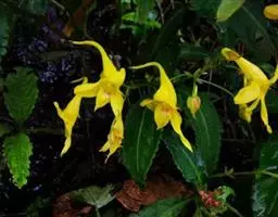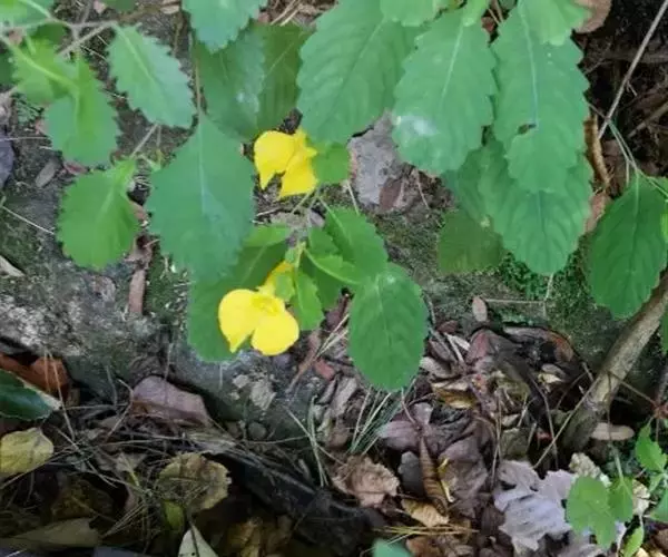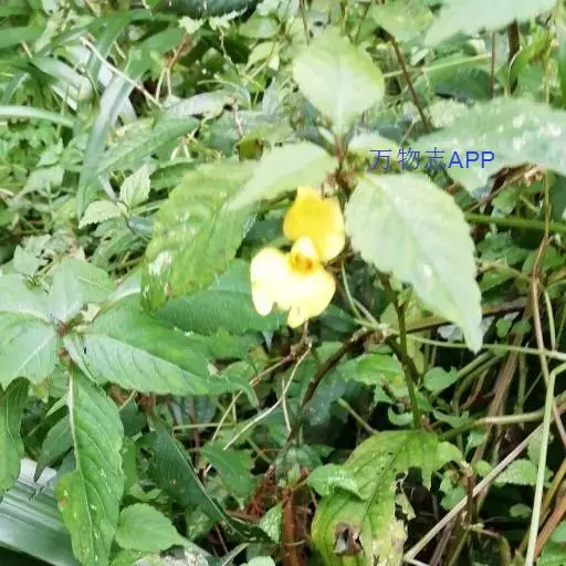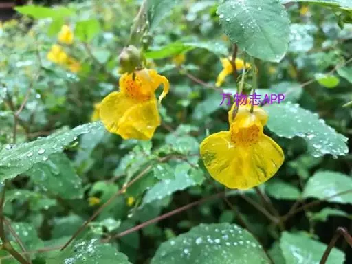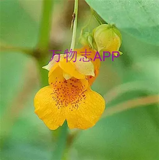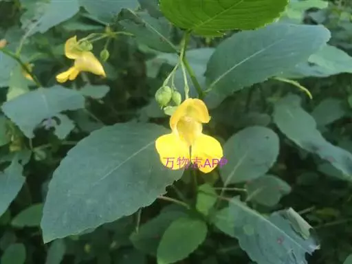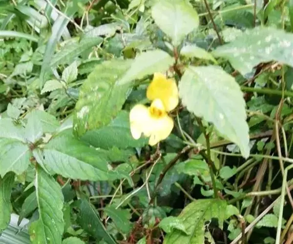 水金凤(学名:Impatiens noli-tangere Linn.):是凤仙花科,凤仙花属一年生草本植物,高可达70厘米。茎肉质,直立,叶互生;叶片卵形或卵状椭圆形,边缘有粗圆齿状齿,上面深绿色,下面灰绿色;叶柄纤细,总状花序;苞片草质,披针形,花黄色;侧生萼片卵形或宽卵形,旗瓣圆形或近圆形,翼瓣无柄,唇瓣宽漏斗状,花丝线形,花药卵球形,顶端尖;子房纺锤形,蒴果线状圆柱形,种子多数,7-9月开花。