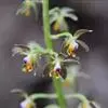 花葶出自假茎上端的叶丛间,长达70厘米,高出叶层之外,密被短毛;花序柄常具1枚鳞片状的鞘;鞘宽卵形,长约6毫米,先端渐尖,无毛;总状花序长达32厘米,疏生多数花,无毛;花梗白色,连同绿色的子房长15-20毫米,弧形弯曲,密被短毛;花张开;萼片和花瓣在背面褐色,内面淡黄色;中萼片近椭圆形,长10-15毫米,宽5-6毫米,先端锐尖,基部收狭,具(3-)4-5条脉,无毛或背面疏被短毛;侧萼片近似于中萼片,但稍狭。