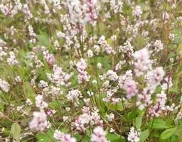 花单生或数朵簇生于叶腋,遍布于植株;苞片薄膜质;花梗细,顶部具关节;花被5深裂,花被片椭圆形,长2-2.5毫米,绿色,边缘白色或淡红色;雄蕊8,花丝基部扩展;花柱3,柱头头状。瘦果卵形,具3棱,长2.5-3毫米,黑褐色,密被由小点组成的细条纹,无光泽,与宿存花被近等长或稍超过。花期5-7月,果期6-8月。