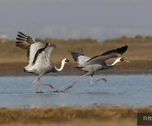 白枕鹤(学名:Grus vipio)体形与丹顶鹤相似,略小于丹顶鹤,而大于白头鹤。上体为石板灰色。尾羽为暗灰色,末端具有宽阔的黑色横斑。取食时主要用喙啄食,或用喙先拨开表层土壤,然后啄食埋藏在下面的种子和根茎,边走边啄食。该鸟为稀有的笼养观赏鸟类,主要繁殖在黑龙江、吉林等省或更北的广大地区,冬天部分迁徙到江苏、安徽、江西等省的湿地越冬。白枕鹤为中国国家二级保护珍禽。
