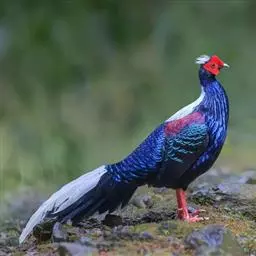 蓝鹇是雉科、鹇属一种大型雉类。体长50-80厘米。雄鸟头颈黑色,羽冠白色,有时杂以黑斑;脸红色,…
