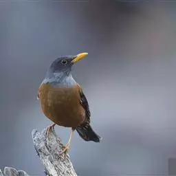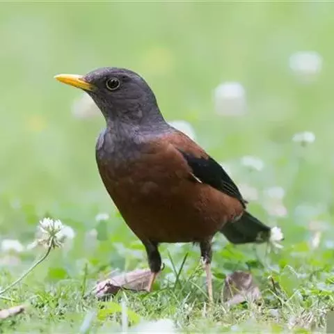 灰头鸫:中型鸟类,体长23-27厘米。整个头、颈和上胸褐灰色,两翅和尾黑色,上、下体羽栗棕色。…