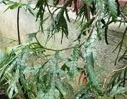 叶在主枝上辐射伸展,侧枝之叶基部扭转成二列状,披针形或条状披针形,通常微弯、呈镰状,革质、坚硬,长2~6cm,宽3~5mm,边缘有细缺齿,先端渐尖,稀微钝,上面深绿色,有光泽,除先端及基部外两侧有窄气孔带,微具白粉或白粉不明显,下面淡绿色,沿中脉两侧各有1条白粉气孔带;老树之叶通常较窄短、较厚,上面无气孔线。