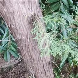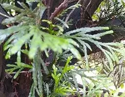 杉木 乔木,高达30m,胸径可达2.5~3m;幼树树冠尖塔形,大树树冠圆锥形,树皮灰褐色,裂成长条片脱落,内皮淡红色;大枝平展,小枝近对生或轮生,常成二列状,幼枝绿色,光滑无毛;冬芽近圆形,有小型叶状的芽鳞,花芽圆球形、较大。