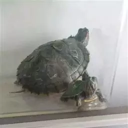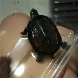 刚破壳孵出的幼龟,待脐带干脱收敛后用1%生理盐水消毒,然后置于水温25-30℃的水箱内,每天换水2-3次,2-3天后恫吸煮熟的麦就、鸡蛋南瓜、米等混合物,或喂切碎的鱼、蚌、肉、动物内脏和居宰下脚料,每天下午15-17时投喂。约50天后,每天上午8时、下午17时各喂1次,投喂量以少有剩余为宜,并及时清除残料,以防败坏水质。冬季幼龟要注意保暖,使之安全越冬,当水温15℃以下时,可用塑料薄膜。