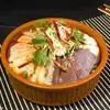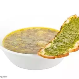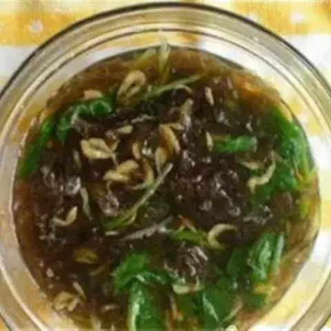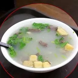 5、把汤倒进碗中,撒上切碎的紫苏沫和百里香,在旁边加两勺酸奶油。吃的时候,可以调和均匀。