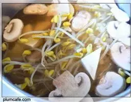 2、在锅里倒入1升水加两小勺鸡精(也可以用1升鸡汤),把切好的蔬菜都放进去,煮到软了为止。
