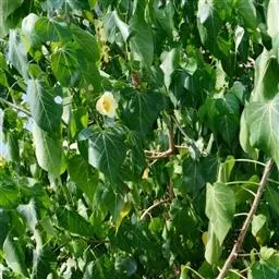 苘麻锦葵科苘麻属一年生亚灌木草本植物。茎秆较高,上面有柔毛;叶子较大且有纹路,浅绿色,边缘不平整,…