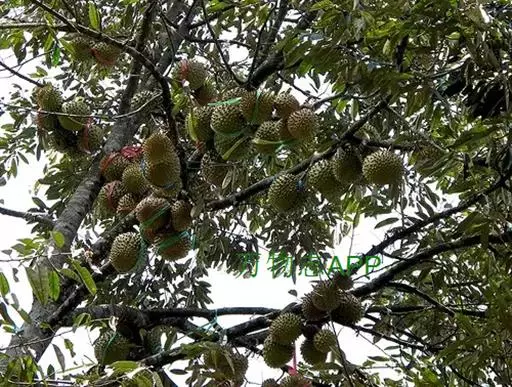 榴莲 泰国榴莲有二百个品种,但普遍种植的有六十至八十种。其中最著名的有三种:轻型种:伊銮、胶伦通、春富诗、金枕和差尼,四、五年后结果;中型种:长柄和谷,六至八年结果;重型种:甘邦和伊纳,八年结果。它们每年结果一次,成熟时间先后相差一、二个月。