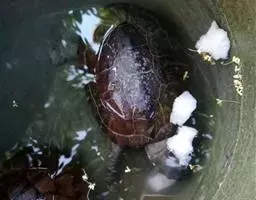 换水频率和方式也要根据缸体大小、养殖密度、投喂饵料来灵活掌握。采用鲜活饲料喂养时,水质容易变坏,视水质情况,1-2周换水一次,1-2个月清理一次过滤桶。以配合饲料喂养时可适当延长换水时间和过滤桶清洗时间,每月换水一次,6个月清理一次过滤桶。由于养殖水温较高,一旦操作不当,过滤系统立即失灵,水质很容易恶化,产生的硫化氢对龟有危害。刚安装的过滤桶最少要一个月才能发挥作用,因此养殖前期要勤换水,减少喂食量。清洗滤材时不要清洗太彻底,只要将附着物冲洗掉就可以,避免揉搓过滤材料,保留一部分硝化细菌。刚洗完的桶可以适当添加硝化菌。