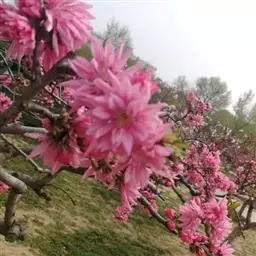 孤植或片状定植乔木山桃比杏树、紫丁香等提早开花8天左右,初春的辽西,乍暖还寒的3月下旬,山桃芽苞在枝干中悄然鼓起,随着气温的上升,展现出艳丽的花朵;夏日里枝繁叶茂,婀娜多姿;秋天,果实累累,挂满枝头;冬日,紫红色的树干,油光发亮,映雪增辉。无论在公园、绿地、小区、庭院还是池畔,适度点缀山桃,都会给景观平添风韵。