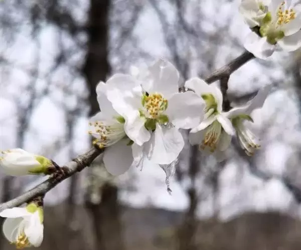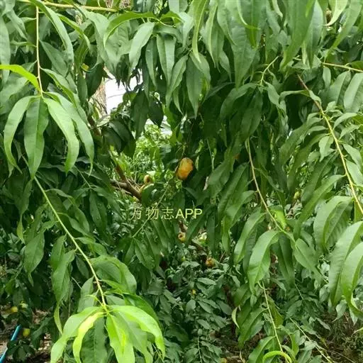 果实近球形,直径2.5-3.5厘米,淡黄色,外面密被短柔毛,果梗短而深人果洼;果肉薄而干,不可食,成熟时不开裂;核球形或近球形,两侧不压扁,顶端圆钝,基部截形,表面具纵、横沟纹和孔穴,与果肉分离。花期3-4月,果期7-8月。