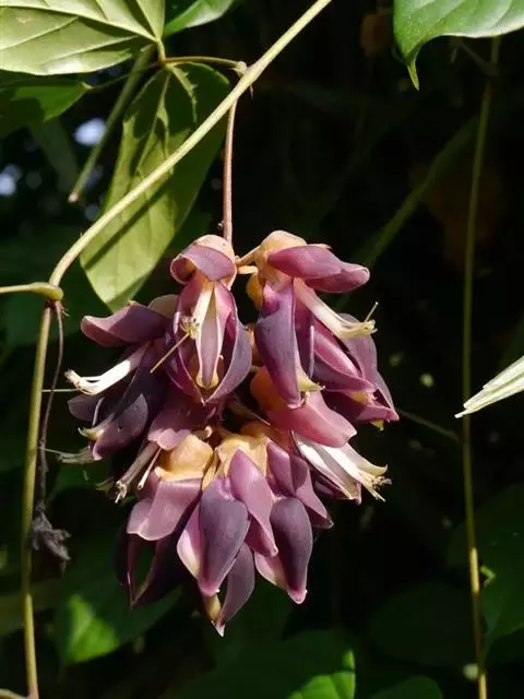 黧豆 Baker ex Burck)是豆科油麻藤属的一年生缠绕藤本植物。枝略被开展的疏柔毛;羽状复叶,…