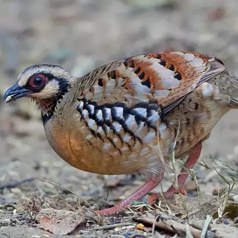 褐胸山鹧鸪:雄鸟体长22厘米,体重310克;雌鸟体长23厘米,体重220-275克。前额皮黄白色,…
