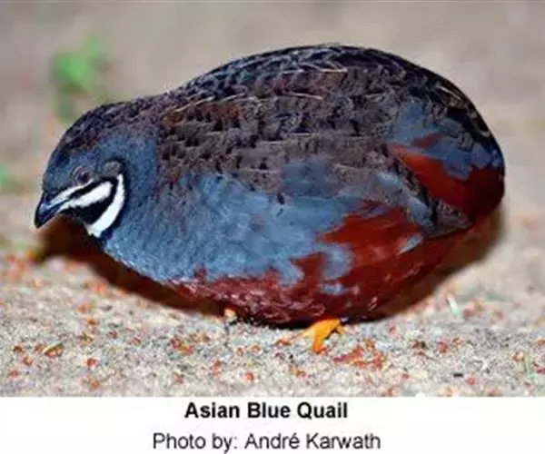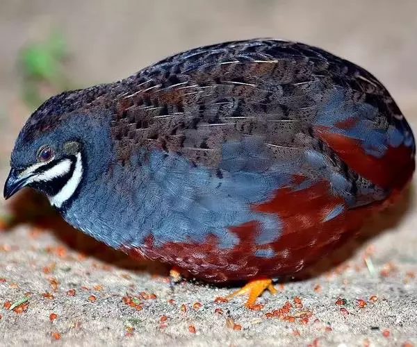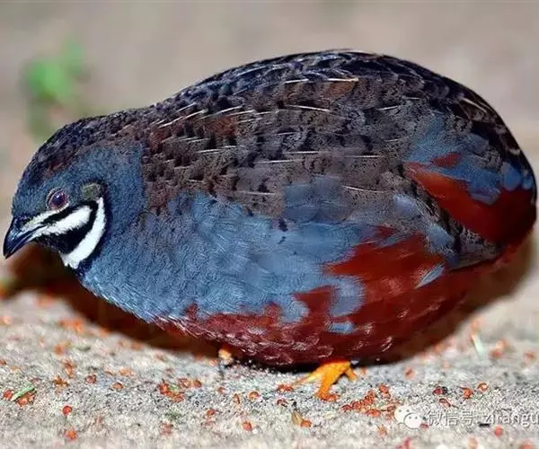 蓝胸鹑(学名:Synoicus chinensis):是雉科蓝胸鹑属的鸟类,体形小于普通鹌鹑,全长12厘米,体重35-48克。在羽色上,雌雄差异很大;雄鸟羽色十分鲜明显耀,喉部中央具一大型黑斑,围以白色;胸部蓝色;腰部至尾下覆羽栗紫色;雌鸟羽色与普通鹌鹑近似。