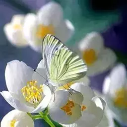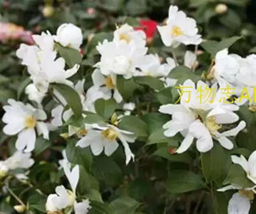 总状花序有花5-7(-11)朵,下部的分枝有时具叶;花序轴长5-7厘米,疏被长柔毛或无毛;花梗长5-10毫米,上部密被白色长柔毛;花萼外面密被紧贴糙伏毛;萼筒钟形,裂片卵形,长约5毫米,宽约3.5毫米,先端骤渐尖;花冠盘状,直径2.5-3厘米,花瓣白色,卵形或近圆形,基部急收狭,长13-15毫米,宽8-13毫米;雄蕊30-35,最长的长达10毫米;花盘无毛;花柱长约5毫米,无毛,近先端稍分裂,柱头棒形,长约1.5毫米,较花药小。