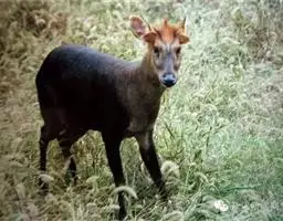 黑麂是偶蹄目鹿科鹿属哺乳动物,又名别称青麂、红头青麂、乌金麂、蓬头麂。体型较大,体长约1米,…