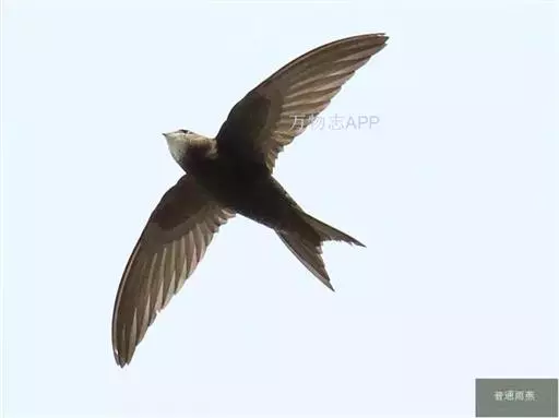 普通楼燕(学名:Apus apus):是一种体长21厘米的雨燕。尾略叉开,特征为白色的喉及胸部为一道深褐色的横带所隔开。两翼相当宽。虹膜褐色;嘴黑色;脚黑色。振翅频率相对较慢。白天常成群在空中飞翔捕食。尤以晨昏、阴天和雨前最为活跃。飞翔疾速,时速可达110千米。