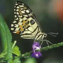 斑凤蝶,Chilasa clytia ,属于凤蝶科,外观拟态成青斑蝶,翅膀具条状与块状的灰白色斑纹…