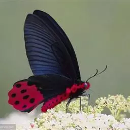 曙凤蝶是凤蝶科、曙凤蝶属蝴蝶。体背黑色,头、颈、胸侧及腹侧具红色鳞毛。雌、雄异型。雄蝶翅黑绒色,…