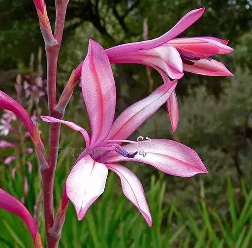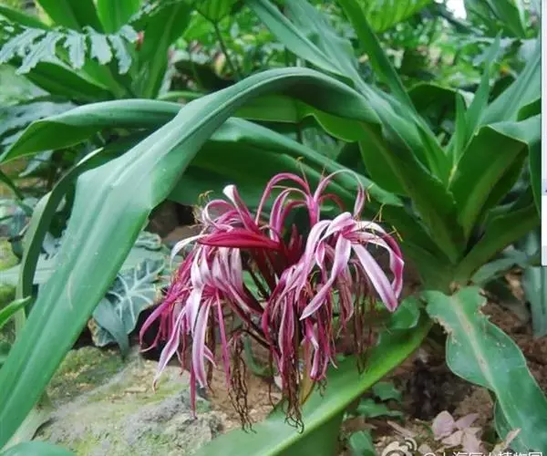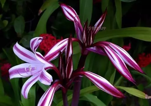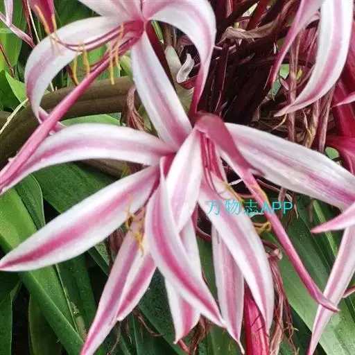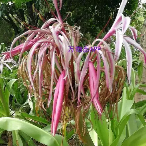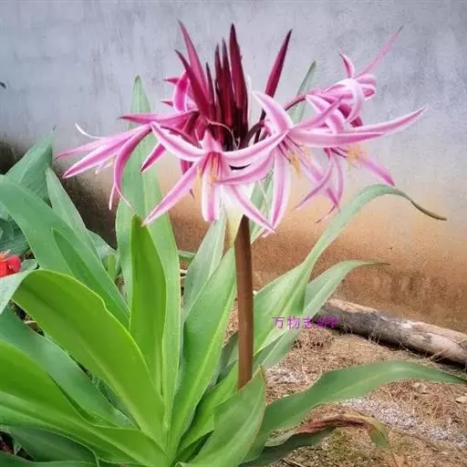 红花文殊兰又名西南文殊兰,拉丁文名Crinum latifolium L.多年生粗壮草本。分布于广西、贵州、云南。常生于河床、沙地。越南至印度及马来西亚也有分布。