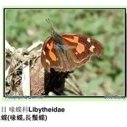 下唇须很长,突出在头前方呈喙状。前翅顶角突出呈镰刀的端钩,后翅外缘锯齿状。翅色黑褐,…