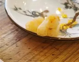 3洗五六遍左右,直到水不再浑浊,剩下那一下块黄黄的东东就面筋啦,在面筋里加点发酵粉抓匀,上蒸屉,足气蒸20分钟,晾凉后切片(也可以不蒸,用油炸下,然后炒着吃,味道也不错)。