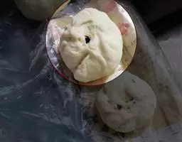 接着又是体力活:擀面。从揉好的面团上揪下一块,尽力地擀(一般是最后擀成圆形),直到将其擀成2~3毫米的薄片。全部擀好以后就可上锅蒸。一般当面皮变成透明状就好了。