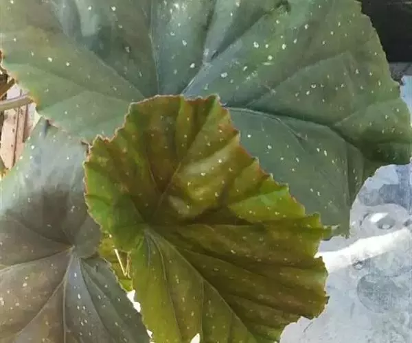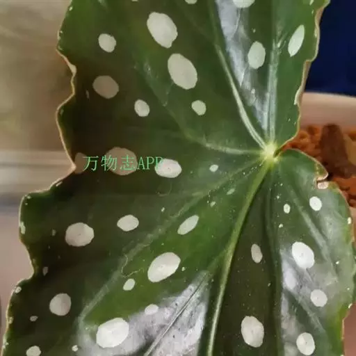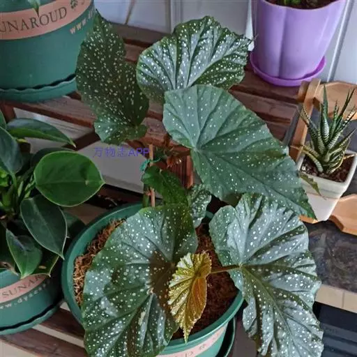 竹节秋海棠同属相似种银星秋海棠。叶绿色,有光 泽,叶面上有密集的银白色斑点,叶缘有齿或波状棱角,背面绿色。