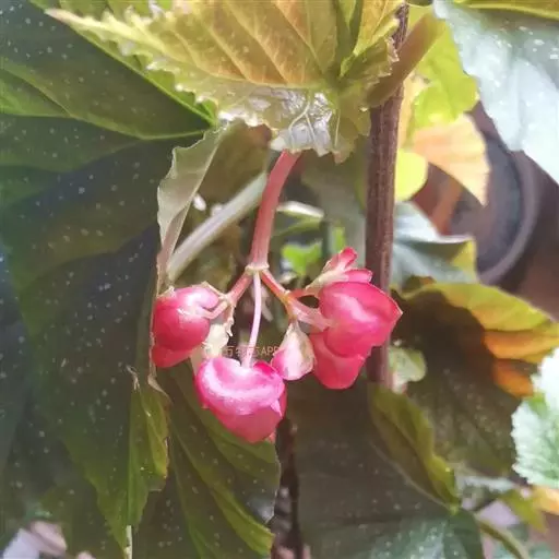 一般于春季进行扦插、分株繁殖。室内盆栽观赏佳品。 竹节海棠绿色的叶片上布满白色的斑点,犹如天空上的点点 繁星,和红色鲜丽的叶背和大而下垂的深红色花序相互映衬,更 显色彩娇丽华美,相得益彰。是观叶、观花俱佳的观赏花卉。