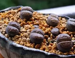 3、施肥:植物对肥料要求不高,生长期可每月施肥1次多肉专用缓释肥,施肥遵循少量多次原则进行,休眠期要停止施肥较好。