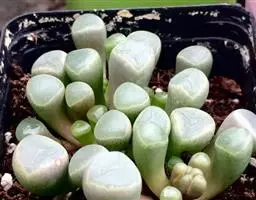 五十铃玉是番杏科窗玉属的多年生肉质植物,别名有“棒叶花”“婴儿脚趾”。植株高5厘米,叶片淡绿色,肉质,…