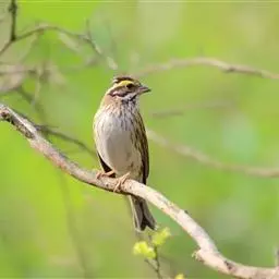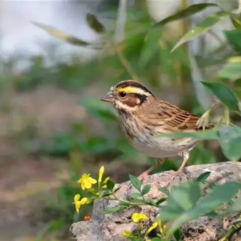 黄眉鹀是雀形目鹀科鹀属鸟类,体型中等偏小。雄鸟头部主要为黑色,冠纹白色,眉纹前段黄色而后段白色,…