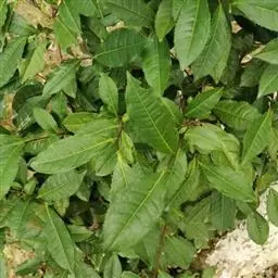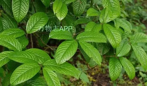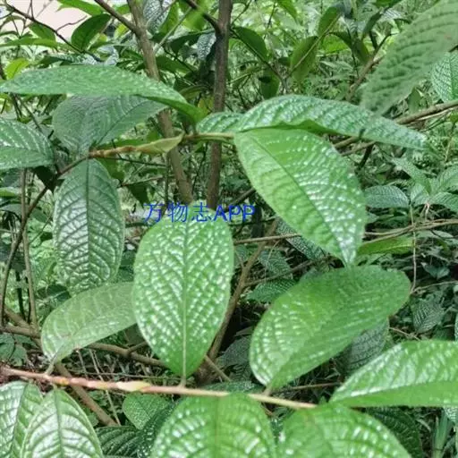 灌木,高3米,嫩枝有短粗毛,老枝变秃。叶革质,椭圆形,长12-22厘米,宽5.5-8.5厘米,先端急尖,基部阔楔形或窄而圆,上面深绿色,干后橄榄绿色,有光泽,下面黄褐色,被柔毛,至少在中脉及侧脉上有毛,有黑腺点,侧脉10-14对,与中脉在上面凹下,在下面强烈突起,边缘有细锯齿,齿刻相隔2-3毫米,叶柄长1厘米,上面有沟,无毛,下面有毛。