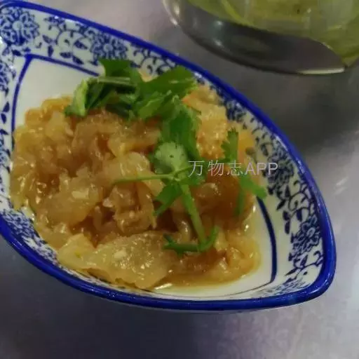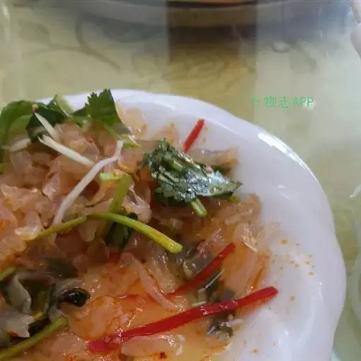 海蜇又名水母,白皮子,主产于中国东南沿海。8~9月间,海蜇常成群浮游于海面,有时被冲击而搁浅在海滩,捕捞时,先用长标刺穿其伞体,然后用网捕获。捕后用石灰、明矾浸制。再榨去其体中水分,洗净,盐渍。一般伞体部和口腕部分开加工,口腕部俗称“海蜇头”,伞部俗称“海蜇皮” [1-2] 。